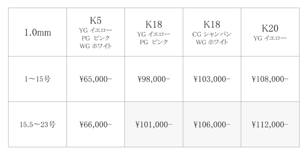 お選びいただく素材、リング幅によって価格が異なります。